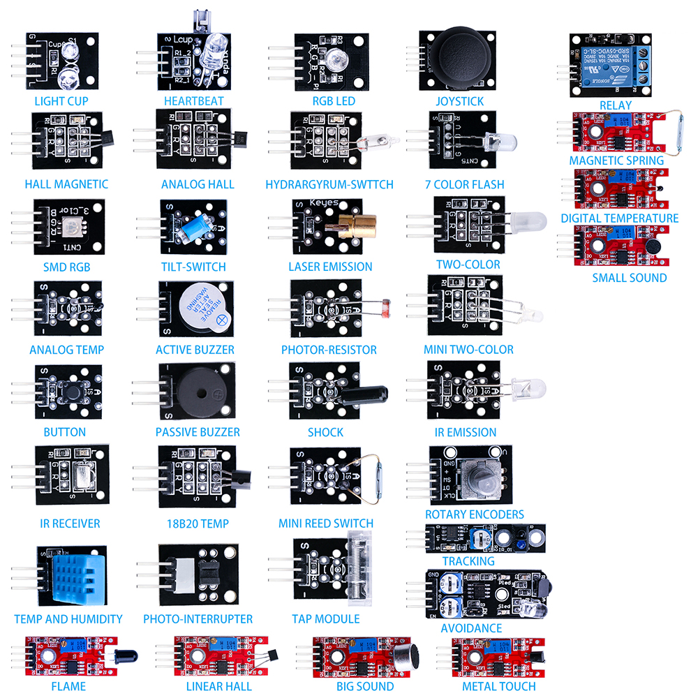 Bộ kít hoàn chỉnh bao gồm 37 module cảm biến khác nhau sử dụng cho Arduino.