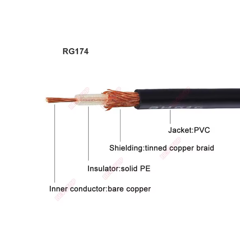 Dây tín hiệu RF RG174 trở kháng 50Ohm, tần số hoạt động 0-3GHz dùng phổ biến làm dây nối Anten, truyền dẫn tín hiệu RF.