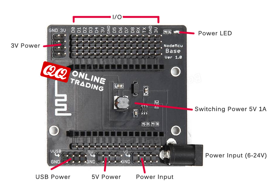 Shield Wifi ESP8266 NodeMCU có thể cắm trực tiếp với module Module Arduino NodeMcu Lua ESP8266 ESP-12 để mở rộng thêm nhiều chân kết nối sử dụng cho nhiều mục đích.