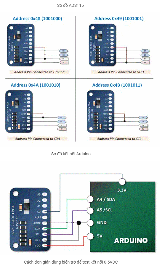 Đối với các bộ vi điều khiển không có bộ chuyển đổi ADC (analog-to-digital) hay khi bạn muốn có một phép biến đổi ACD với độ chính xác cao hơn thì module ADS1115 là một giải pháp tối ưu, ADS1115 cung cấp phép đo với mật độ lên đến 16 bit cùng tần số lấy mẫu 860 samples/second, và được truyền đến vi điều khiên trên bus I2C,...
