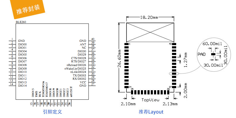 Module Uart bluetooth 4.2 BLE260 thông qua các RFIC CC2640 của TI, tích hợp 128KB bộ nhớ flash và 8KB bộ nhớ đệm RAM tĩnh (SRAM), và nó chỉ hỗ trợ Bluetooth năng lượng thấp. Với thiết bị ngoại vi phong phú, nó thích hợp để kết nối bộ cảm biến bên ngoài và thu thập dữ liệu tương tự và kỹ thuật số tự động khi các bộ phận khác trong chế độ ngủ.