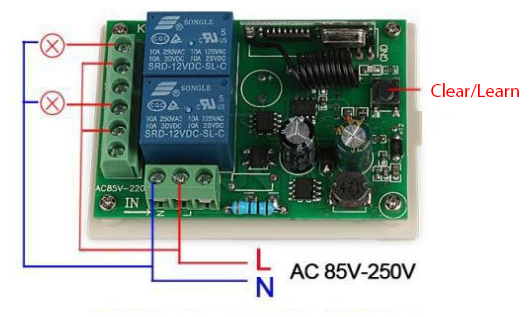 Bộ thu tín hiệu RF 433Mhz 2 kênh, 220V, có 2 relay, học lệnh điều khiển là bộ chấp hành tín hiệu từ điều khiển RF để điều khiển thiết bị điện 220V.
