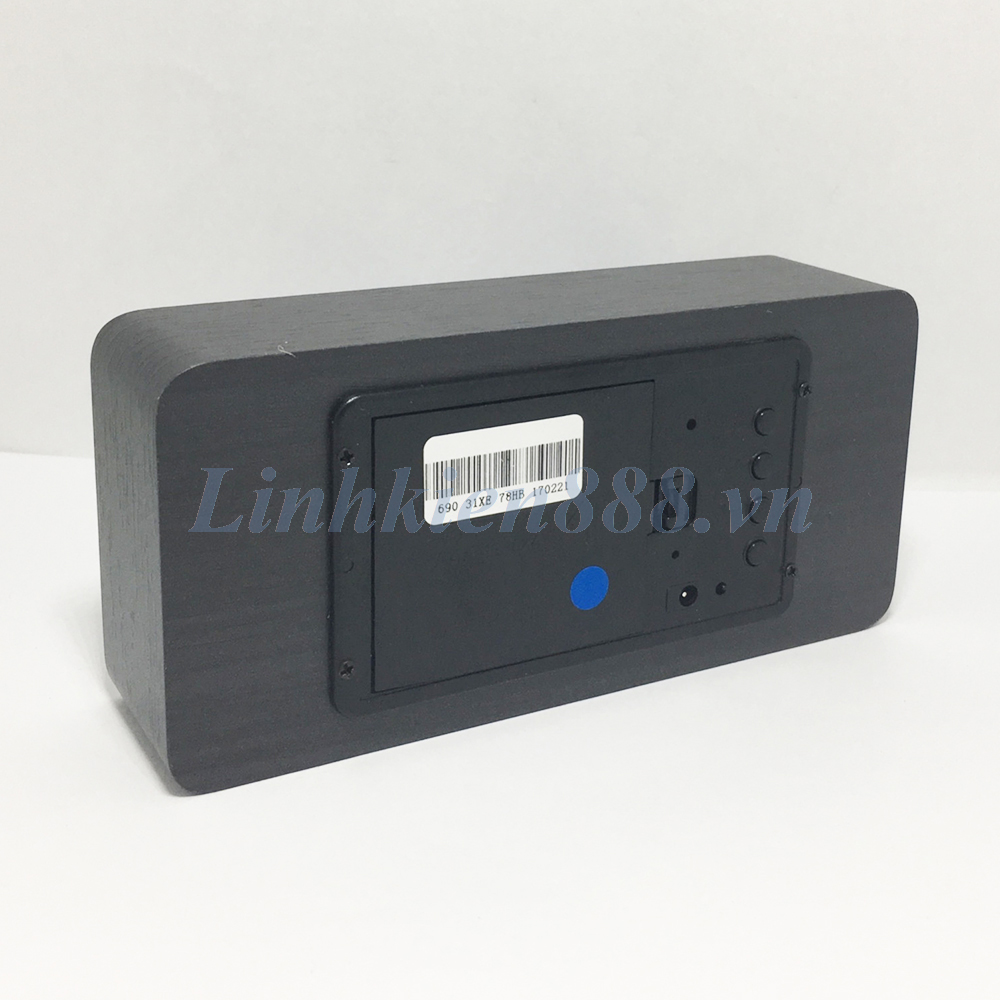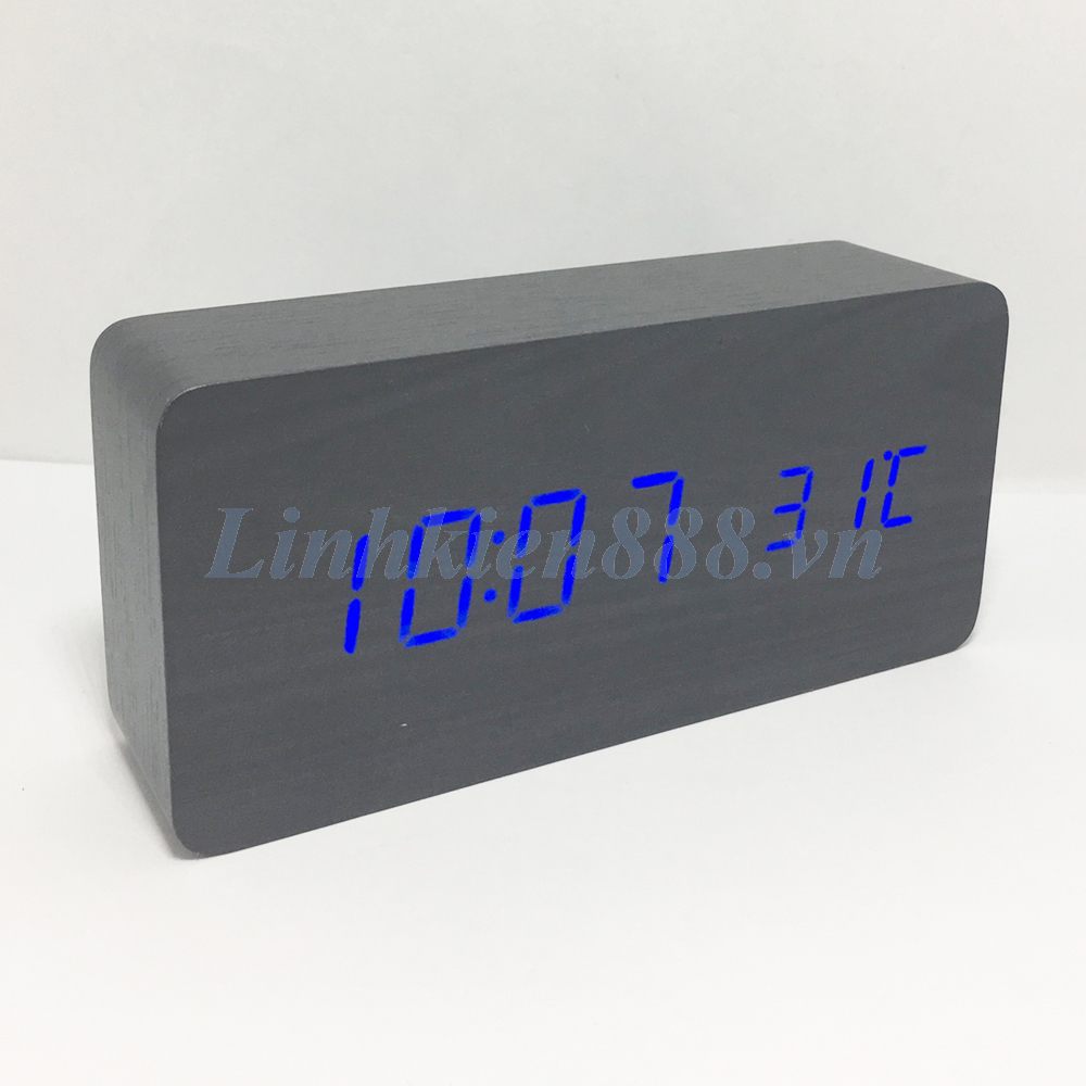 Đồng hồ để bàn có báo nhiệt độ màu gỗ tối LED xanh lam hình hộp chữ nhật