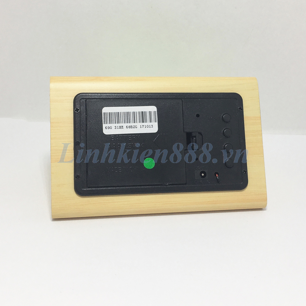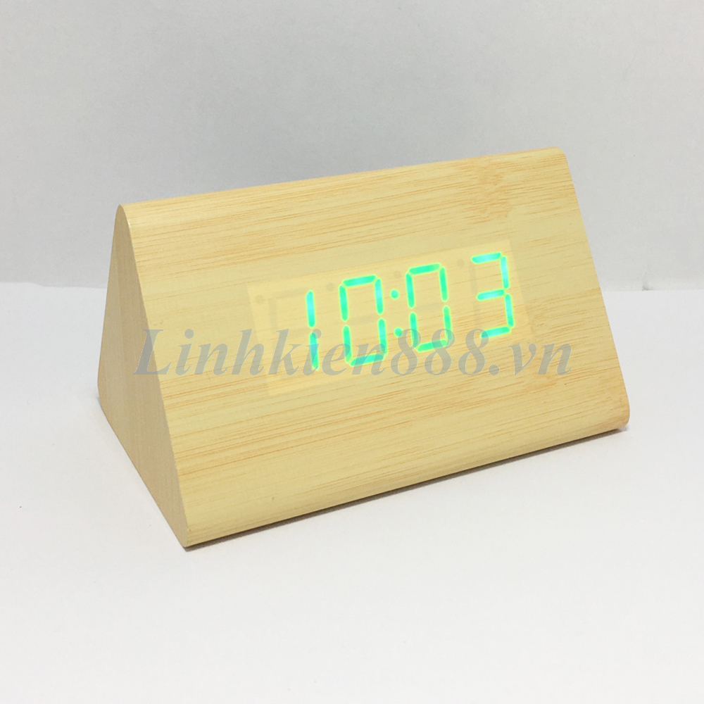 Đồng hồ để bàn màu gỗ LED xanh lá hình tam giác