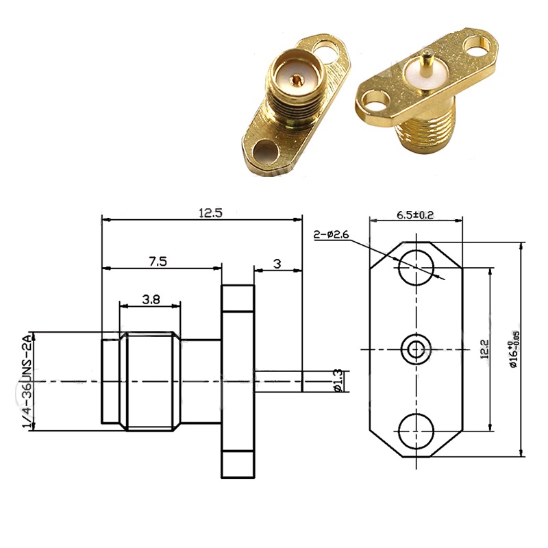 Đầu chuyển đổi SMA cái lỗ trong loại hàn mạch in có đế bắt 2 lỗ SMA-KF