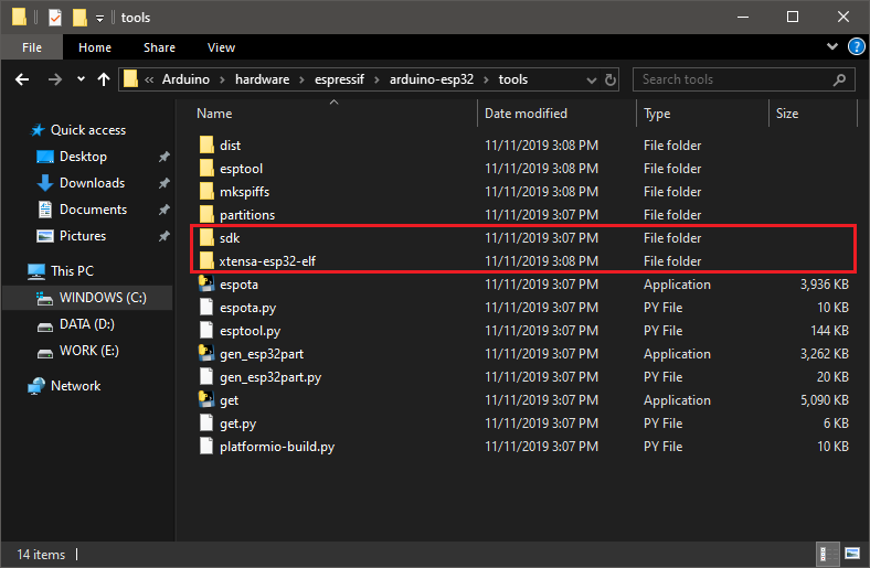 - Mở thư mục /arduino-esp32/tools click đúp chuột vào get.exe và đợi 1 lát để tải về.