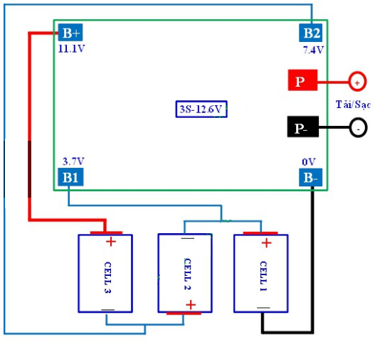 - Hàn theo thứ tự: B- (0V), B1 (3.7V),... B+