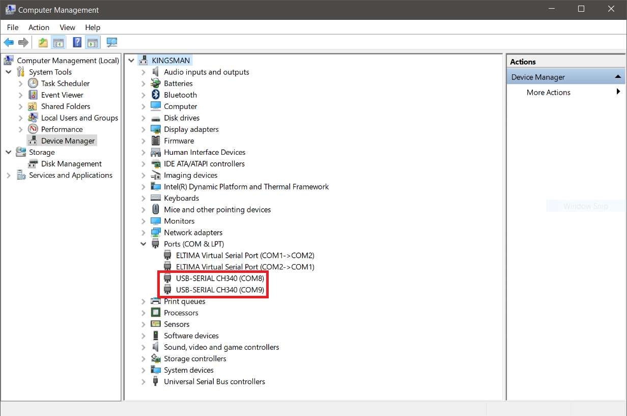 Để biết module đang kết nối với cổng COM nào thì ta bấm chuột phải vào My Computer > Manage > Device Manager > Ports (COM & LPT). Cổng COM bạn sẽ tìm được cổng COM bạn đang sử dụng kết nối module.