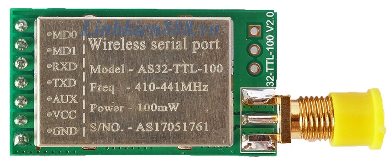 Module thu phát RF AS32 - TTL - 100 sử dụng chip Semtech SX1278 của chuẩn LoRaTM không dây, module ngoài sử dụng công nghệ GFSK truyền thống, nó cũng sử dụng công nghệ Lora (long range) chống nhiễu và giảm dòng tiêu thụ .Module hỗ trợ chuẩn giao tiếp UART, độ mạnh tín hiệu phát lớn 100mW, truyền tải được khoảng cách xa mà điện năng tiêu thụ thấp.