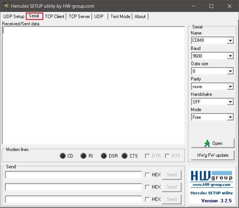 Bước 3: Mở phần mềm Hercules 3.2.5 có thể tải tại đây. Chọn tab Serial.