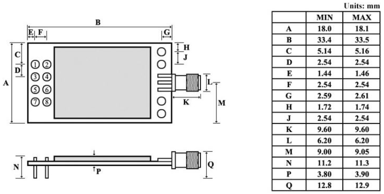 - Tốc độ truyền dữ liệu: có thể cấu hình được 250k, 1M, 2Mbps