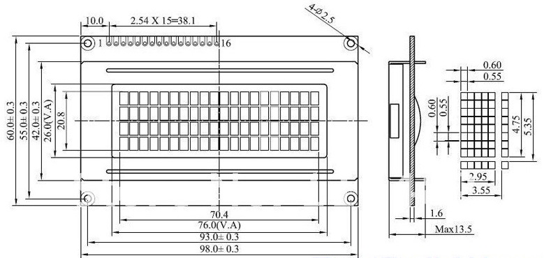 - Độ rộng điểm ảnh: 0.55x0.55mm