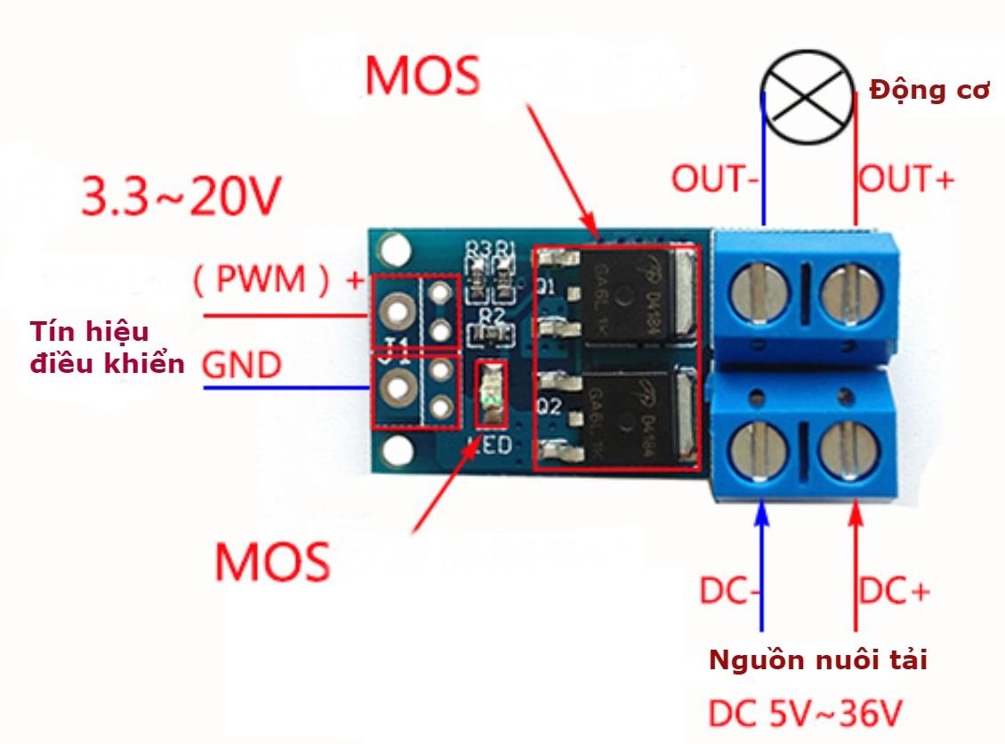 Thông số kỹ thuật Kích thước: 32mm x 50mm x 15 mm. Điện áp hoạt động: 6- 28VDC. Dòng tiêu thụ: 3A. Có triết áp...
