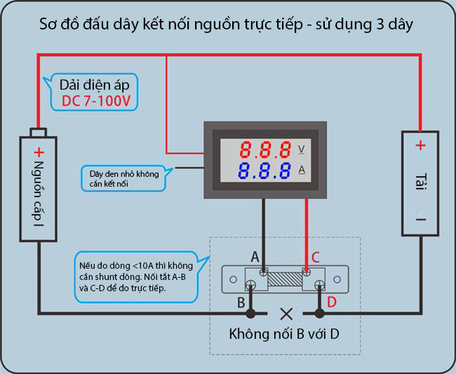 Đồng Hồ Đo dòng điện, điện áp DC 10A được sử dụng để đo và hiển thị điện áp, dòng điện của tải DC tối đa 10A/100VDC, thiết kế nhỏ gọn, bền bỉ, kết nối dễ dàng, có thể chỉnh sai số của đồng hồ bằng hai biến trở căn chỉnh áp và dòng với thiết bị đo chuẩn.