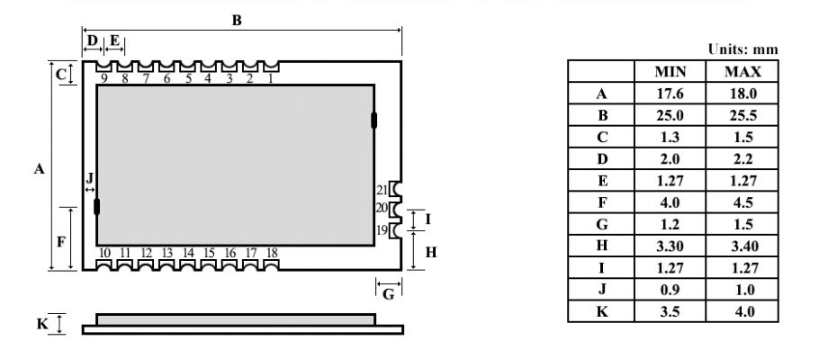 - Điện áp cung cấp: 1.8 - 3.6 V (điện áp quá 3.6V gây hỏng module)