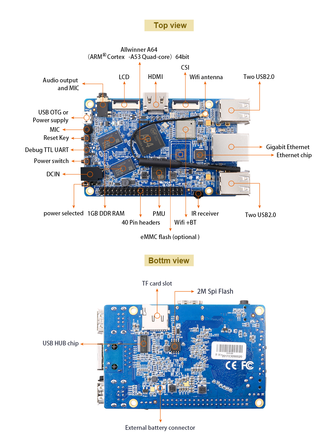 Hỗ trợ các hệ điều hành bao gồm Android 4.4, Ubuntu, Debian, Raspberry Pi image, and Banana Pi image, phiên bản mới nhất của Orange Pi mang tên Orange Pi Win gần giống như Banana Pi M64, nhưng có ít ram hơn. Sử dụng chip Allwinner A64, hiện tại bản build Armbain cho Orange Pi Win vẫn chưa có nên chúng ta dùng tạm các bản build khác cho Pine A64 hoặc Banana Pi M64. Tôi hy vọng Armbian sẽ sớm ra bản build cho phiên bản này.